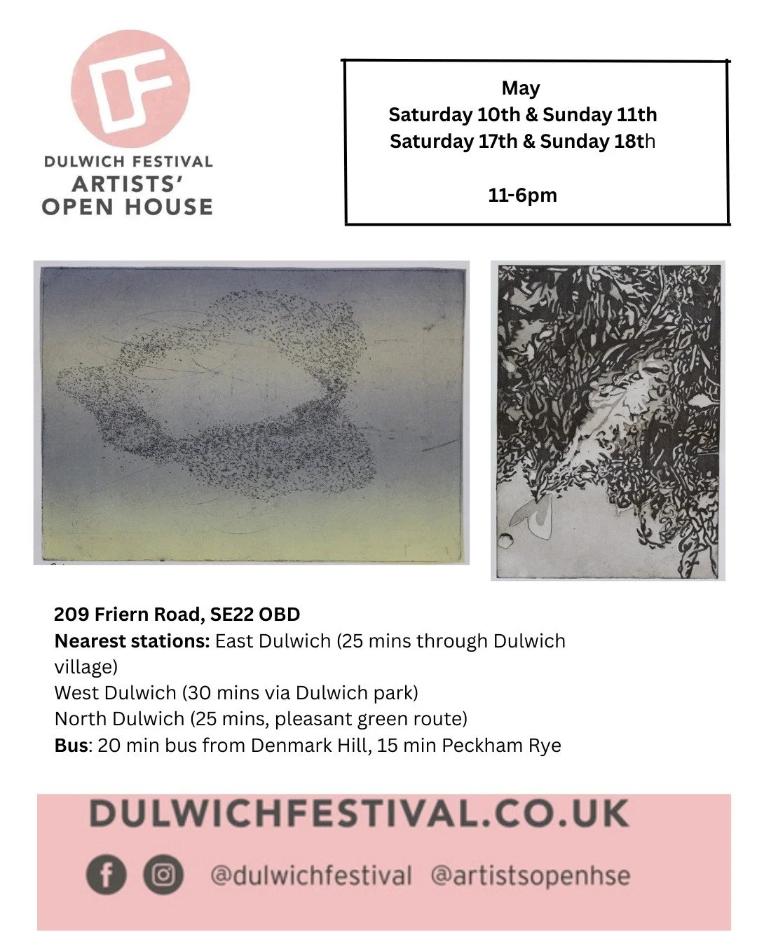 I am taking part in Dulwich Artist Open House as part of Dulwich Festival! Come and see some new etchings I have been working on. The garden is nice, snacks will be nice, weather OK, art amazing :)