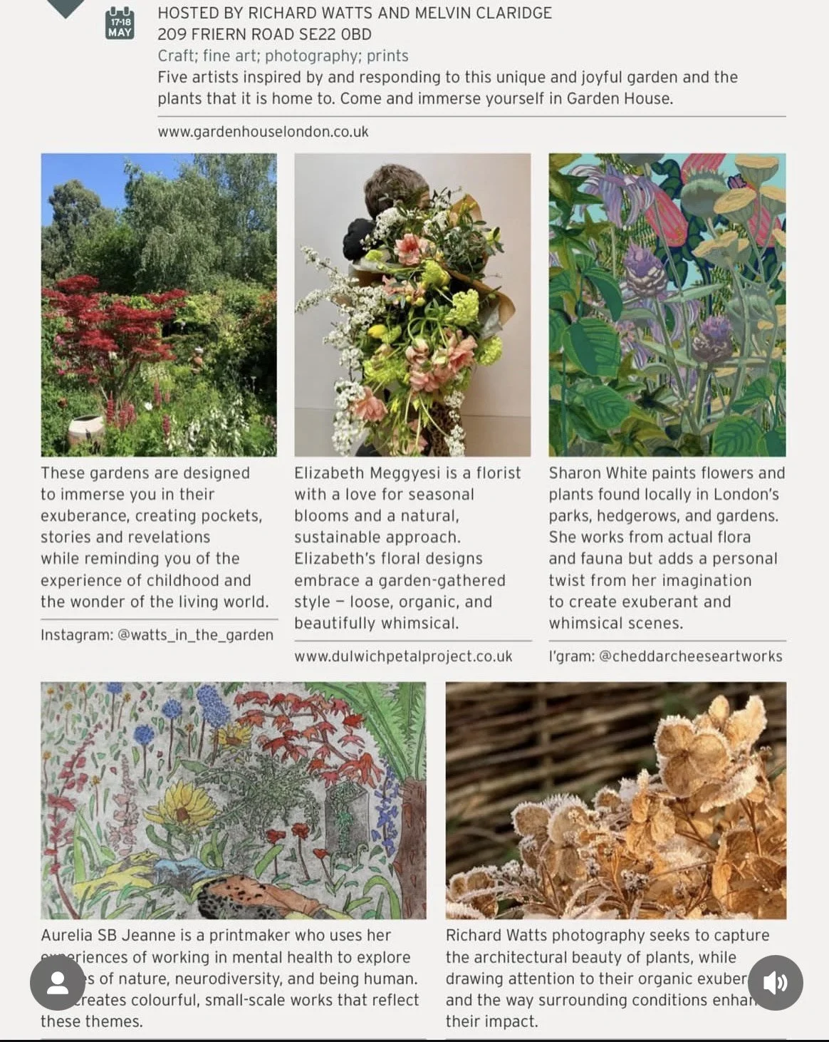 I will be joined by florist Elizabeth, painter Sharon, Photographer and botanic enthusiast Richard and of course the lovely gardens, tended to by Richard & Melvin.